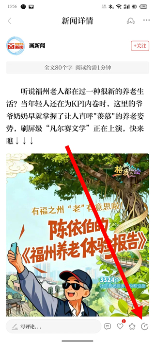 3、在新聞詳情頁,點(diǎn)擊右下角的分享按鈕,彈出分享選項(xiàng)列表。
