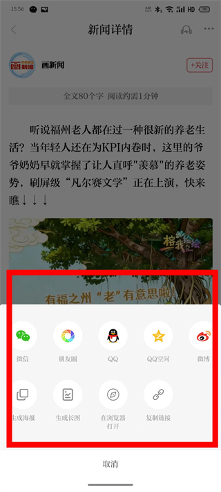 4、在分享選項(xiàng)中,選擇想要的分享渠道,完成新聞分享操作。