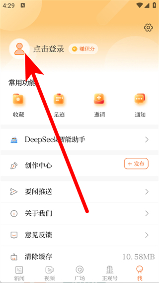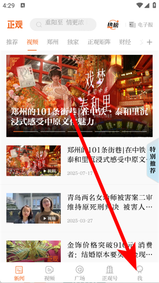 1、打開(kāi)正觀新聞,點(diǎn)擊底部我,進(jìn)入個(gè)人頁(yè)面。
