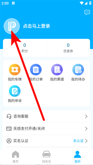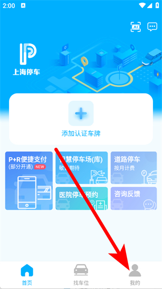 1、打開(kāi)上海停車,點(diǎn)擊底部我的,進(jìn)入個(gè)人頁(yè)面。