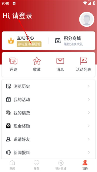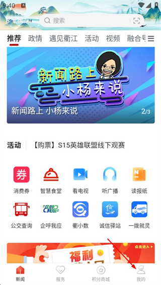 1、打開e覽衢江,點擊頁面右下角我的,可進(jìn)入個人中心頁面。