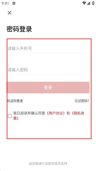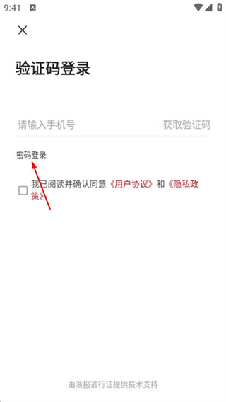 4、在密碼登錄頁面,輸入信息,同意協(xié)議后點擊登錄可完成賬號登錄。