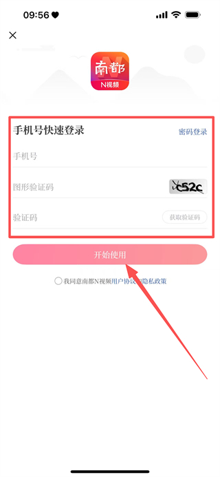 4、輸入手機號、驗證碼,獲取驗證碼并輸入,完成賬號登錄操作。