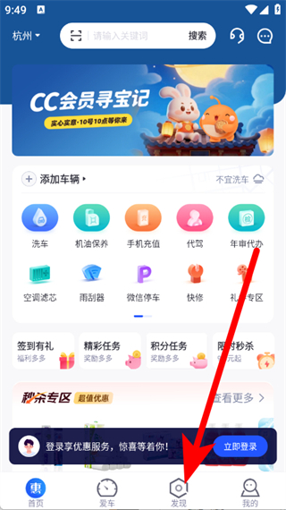 1、打開車主惠,點(diǎn)擊底部導(dǎo)航欄發(fā)現(xiàn),進(jìn)入發(fā)現(xiàn)頁(yè)面。