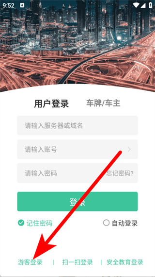 2、在用戶登錄頁面,點(diǎn)擊游客登錄,進(jìn)入游客模式頁面。
