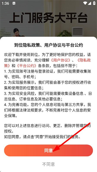 1、在隱私政策、用戶協(xié)議彈窗,點擊同意,進入登錄頁面。