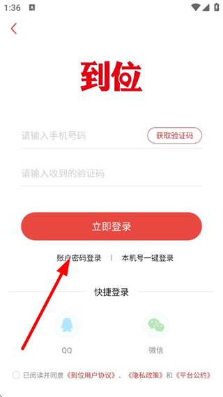 2、在登錄頁面,點擊賬戶密碼登錄,進入賬號密碼登錄界面。