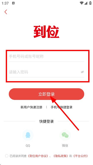 3、輸入手機號碼或賬號昵稱、密碼,點擊登錄,完成賬號登錄操作。