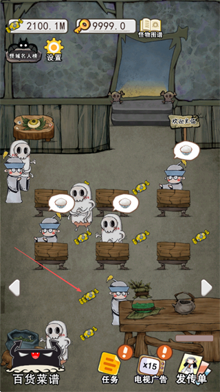 3、通過招募更多小怪物、升級餐位等方式,提升餐廳的生產(chǎn)效率和接待能力,吸引更多客人。