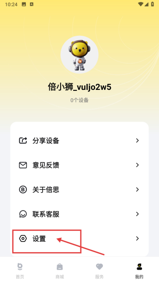 2、在個(gè)人中心,點(diǎn)擊設(shè)置選項(xiàng),進(jìn)入設(shè)置頁(yè)面。