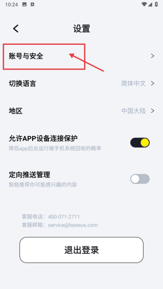 3、在設(shè)置頁(yè)面,點(diǎn)擊賬號(hào)與安全選項(xiàng),進(jìn)入賬號(hào)與安全頁(yè)面。