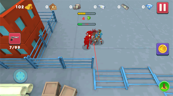 3、在紅色建筑旁攻擊僵尸,注意武器彈藥數(shù)量,及時(shí)補(bǔ)充資源。