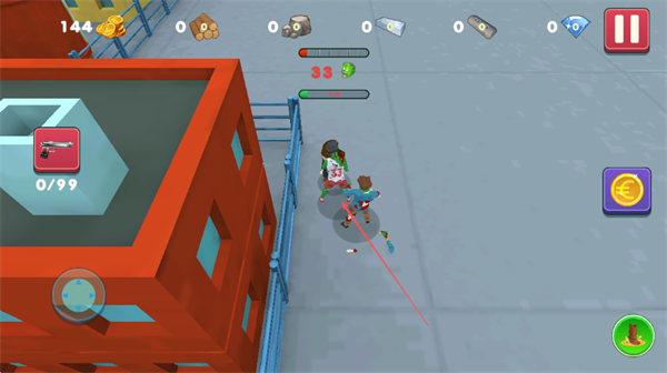 2、在建筑區(qū)域與僵尸戰(zhàn)斗,利用地形走位,避免被圍攻,持續(xù)積累金幣。
