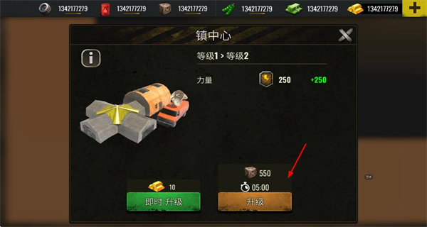 1、在鎮(zhèn)中心界面,點(diǎn)擊升級提升力量,這是增強(qiáng)戰(zhàn)力的關(guān)鍵操作,開啟游戲發(fā)展之旅。
