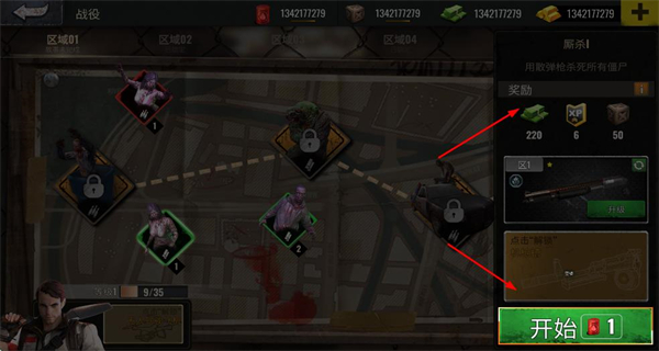 3、在戰(zhàn)役界面,選擇區(qū)域點(diǎn)擊開始,參與戰(zhàn)斗任務(wù),獲取獎(jiǎng)勵(lì),推進(jìn)游戲進(jìn)程。