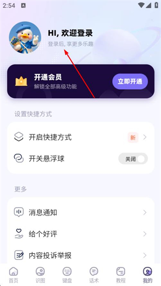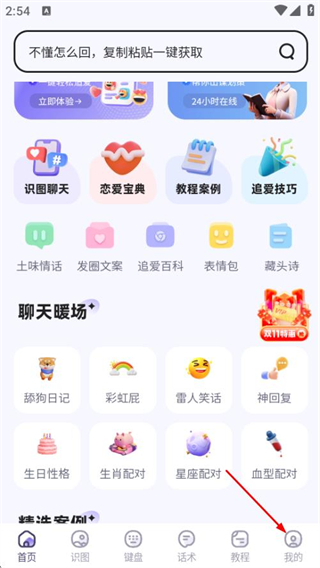 1、打開聊天高手,在首頁點擊我的,進(jìn)入個人中心頁面。