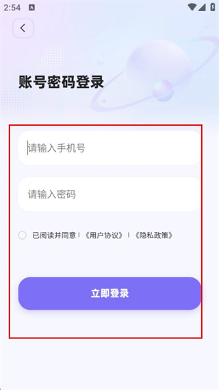 4、在賬號密碼登錄頁面,輸入信息,同意協(xié)議后點擊立即登錄,完成賬號登錄。