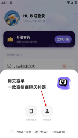 3、在登錄方式選擇彈窗中,點擊賬號登錄,進(jìn)入賬號密碼登錄頁面。
