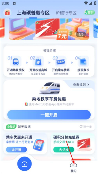 1、打開滬碳行,在首頁點(diǎn)擊我的,進(jìn)入個(gè)人中心頁面。