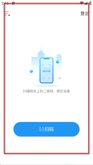 3、登錄后,進入首頁,點擊掃碼按鈕,完成設備綁定。