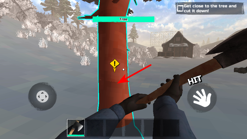 1、在游戲中,用斧頭攻擊樹木,這是獲取木材資源的核心操作,持續(xù)攻擊可砍伐樹木,積累建造和生存所需基礎(chǔ)材料。