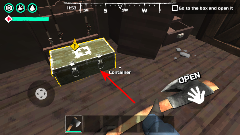 4、靠近帶醫(yī)療標(biāo)志的箱子并打開,箱子中可獲取更多急救物資或稀缺道具,是提升角色生存能力、應(yīng)對(duì)重要途徑。