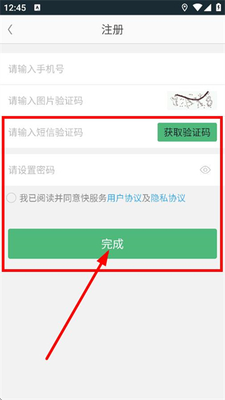 4、獲取驗證碼并輸入后,設置密碼,點擊完成,完成賬號注冊操作。