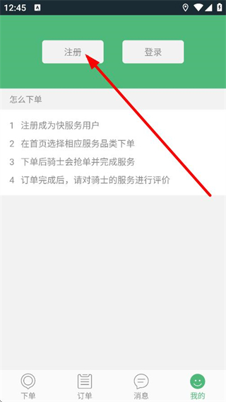 2、在個人的頁面,點擊注冊,進入注冊頁面。
