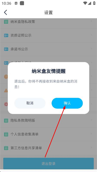 4、在彈窗中,點(diǎn)擊確認(rèn),即可退出登錄操作。