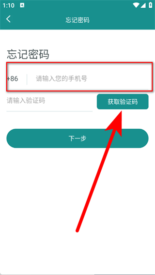 3、進入忘記密碼頁面后,輸入手機號,點擊獲取驗證碼。