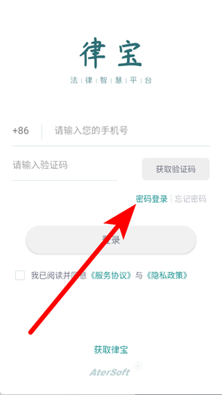 1、打開艾特律寶,在驗證碼登錄頁面,點擊密碼登錄頁面。