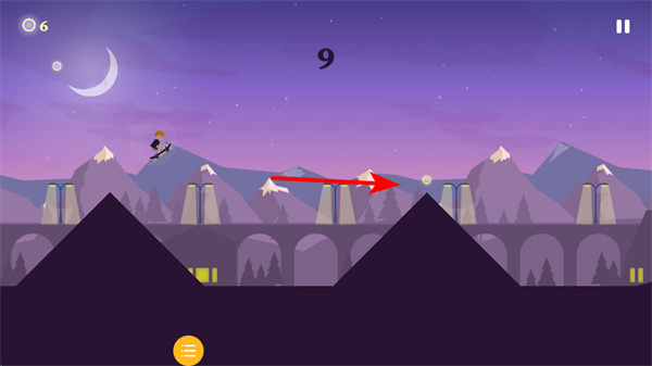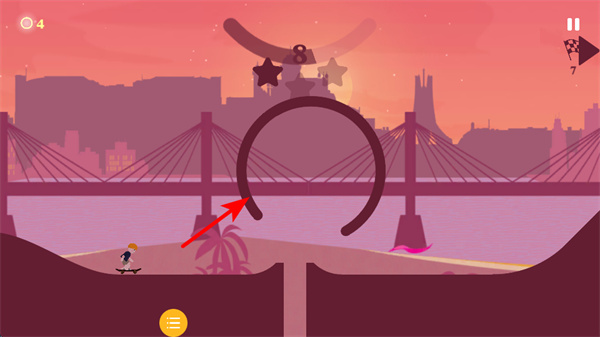 3、引導(dǎo)角色穿過環(huán)形特技區(qū)域,特技區(qū)域是提升得分的重要途徑,穿過環(huán)形可觸發(fā)特技動作,增加游戲趣味性得分。