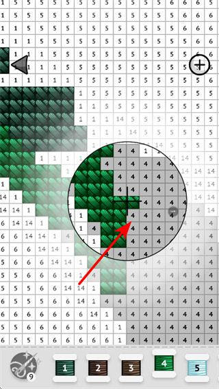 1、在游戲中,選擇對(duì)應(yīng)數(shù)字的針線顏色,顏色選擇是完成像素畫(huà)的基礎(chǔ)操作,選對(duì)顏色可確保圖案填充的準(zhǔn)確性。