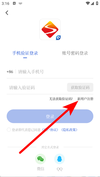 3、在登錄注冊頁面,點擊新用戶注冊,進(jìn)入注冊頁面。