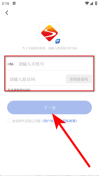 4、輸入手機(jī)號和驗證碼,點擊下一步,完成注冊登錄。