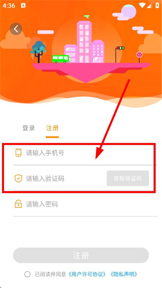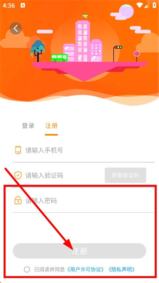 4、輸入密碼,同意相關(guān)協(xié)議后,點擊注冊,完成賬號注冊操作。