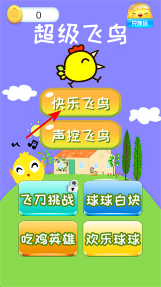 1、在游戲中,點擊快樂飛鳥模式,這是開啟飛鳥冒險的關(guān)鍵操作,點擊后可操控小鳥參與飛行挑戰(zhàn)。