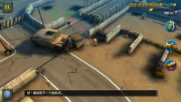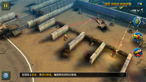 1、在戰(zhàn)場點擊目標進行射擊,摧毀敵方單位,可拖動目標調整射擊方向,持續(xù)推進。
