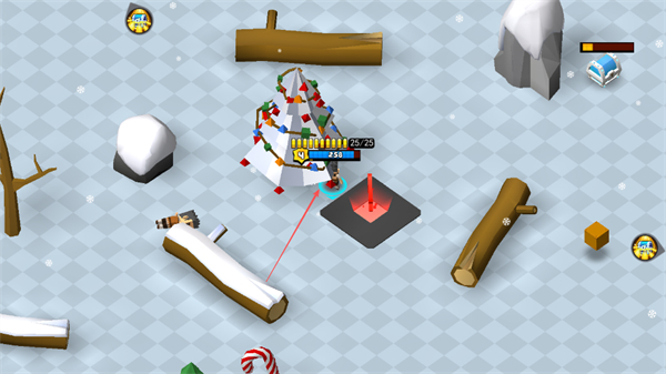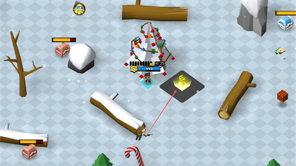 1、在雪地場景中,靠近發(fā)光區(qū)域收集金幣,積累資源,提升自身戰(zhàn)力。
