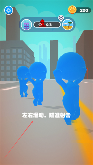 1、左右滑動屏幕瞄準(zhǔn)藍色小人,練習(xí)射擊操作,熟悉瞄準(zhǔn)機制。