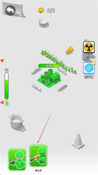 1、點(diǎn)擊噴火兵按鈕,派出噴火兵部隊(duì),向敵方發(fā)起進(jìn)攻。