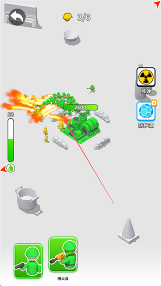 2、噴火兵釋放火焰攻擊,對(duì)敵方造成大范圍傷害,消滅黃色敵方部隊(duì)。
