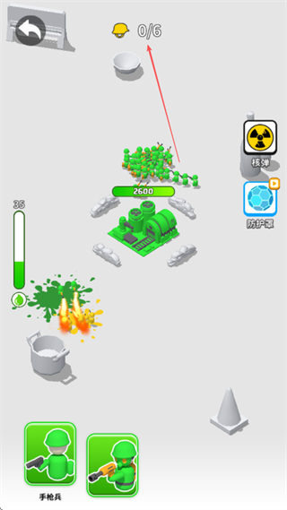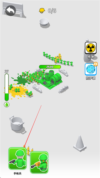 3、點(diǎn)擊手槍兵按鈕,派出手槍兵部隊(duì),補(bǔ)充戰(zhàn)力,持續(xù)攻擊敵方。