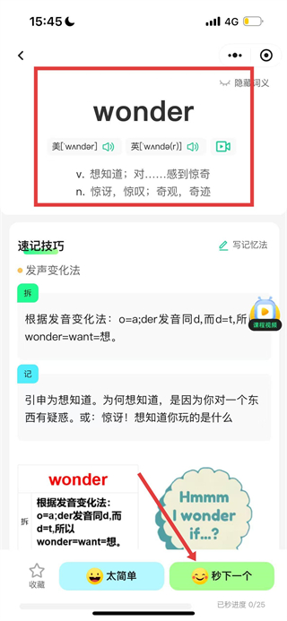 4、學(xué)習(xí)完當(dāng)前單詞后,點(diǎn)擊秒下一個(gè)按鈕,可繼續(xù)學(xué)習(xí)下一個(gè)單詞。