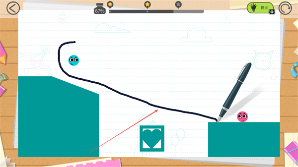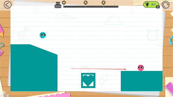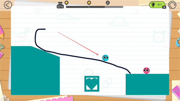 4、藍(lán)色小球沿繪制的線條滑動(dòng),向粉色小球移動(dòng),嘗試與粉色小球相遇,完成關(guān)卡。