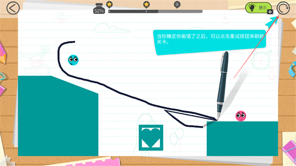 3、繪制好線條后,點(diǎn)擊重試按鈕,讓藍(lán)色小球沿線條移動(dòng),向粉色小球靠近。