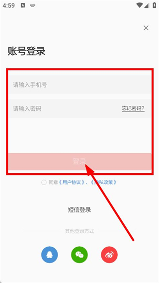 4、輸入手機號、密碼,點擊登錄,完成賬號登錄的操作。