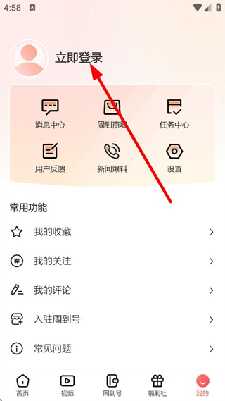 2、在個人頁面,點擊立即登錄,進入登錄頁面。