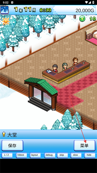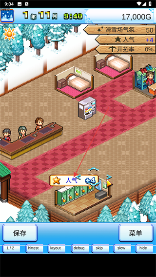 1、在右下角的菜單按鈕中可以進行建筑搭建、廣告推廣和雪場經(jīng)營信息查詢等操作。