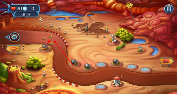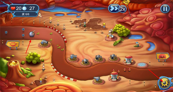 2、敵人波次來襲時,利用已布置的防御塔攻擊敵人,阻止其通過路徑,保障陣地安全。